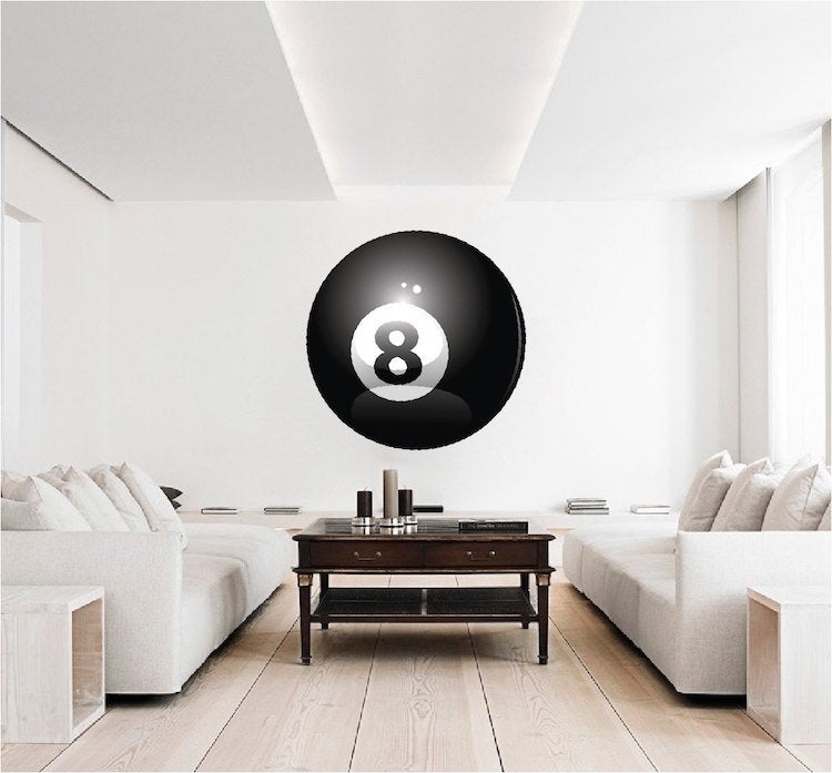 Decorate your room like a pool hall with this great quality 8 ball wall decal! Removable, and easy to use, this is sure to bring out the compliments! Perfect for any room or apartment, this wall decor is the way to go! Did you know the first billiard room was built in England in 1765 A.D.??