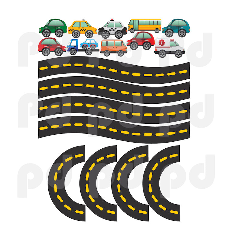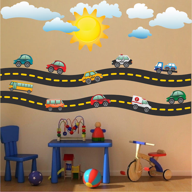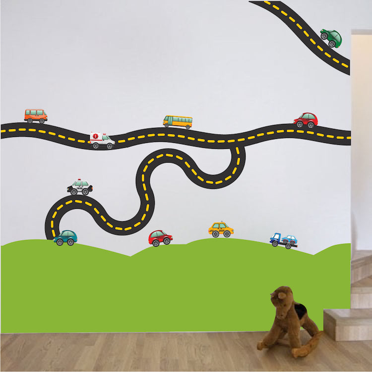 Cars and Race Track Wall Decal Kid's Bedroom Racetrack Wall Decor Removable Car Stickers, b41