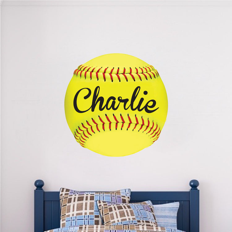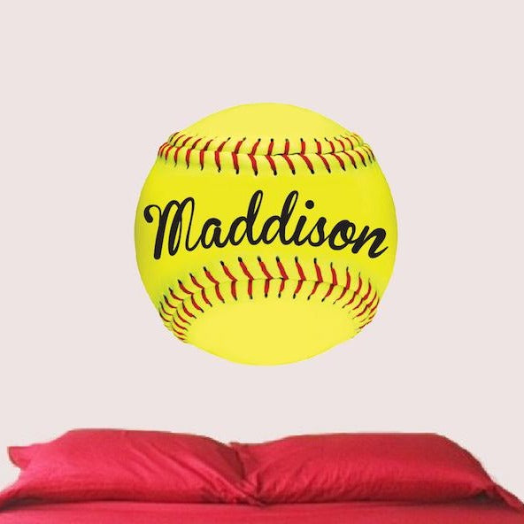 Custom Softball Wall Decal Personalized Name Soft ball Mural Kids Room Sports Wall Vinyl Decor, s69