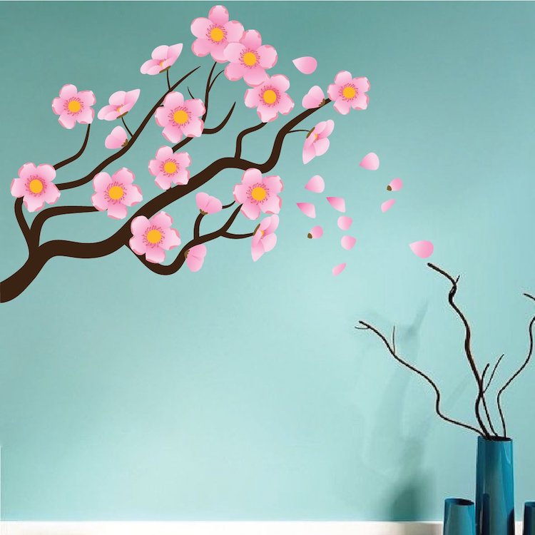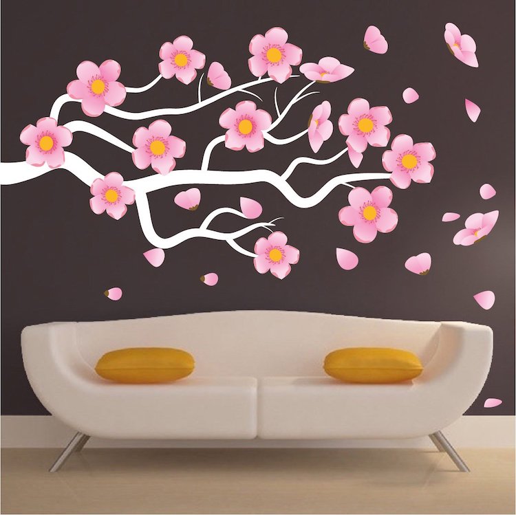 Flower Branch Wall Decal Mural Removable Beautiful Flowers Wall Decor Bedroom Art Mural, c26